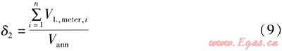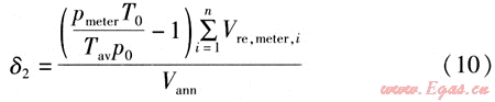 令全年燃?xì)馄骄鶞囟萒av=Tmeter,并將式(8)代入式(9),則δ2的近似計(jì)算公式為: