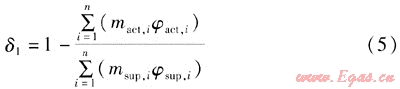 將式(2)~(4)代入式(1),則δ1的計(jì)算公式為: