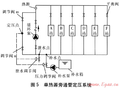 隨著集中供熱的發(fā)展,旁通管定壓的應用越來越廣泛,尤其針對供熱區(qū)域內(nèi)地勢高低起伏的情況。實踐證明,旁通管定壓系統(tǒng)要達到理想的調(diào)節(jié)效果,正確認識它的調(diào)節(jié)過程有著重要的意義。本文結(jié)合工程實例,對旁通管定壓系統(tǒng)中熱網(wǎng)動水壓線的控制策略進行探討。