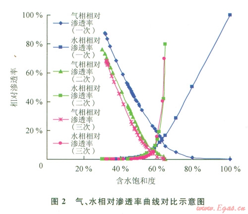 圖2為3輪氣、水互驅(qū)相對(duì)滲透率曲線的對(duì)比效果圖。