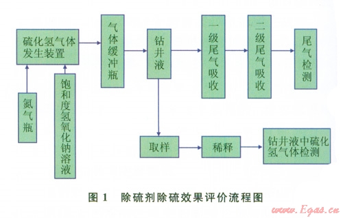 硫化氫屬劇毒氣體,當(dāng)空氣中濃度超過1 000mg/m3時(shí),可引起急性中毒,造成人員傷亡事故[1-3]。鉆井中,硫化氫氣侵首先會(huì)對(duì)鉆井液產(chǎn)生嚴(yán)重污染,導(dǎo)致鉆井液的流變性能變差,如影響攜帶巖屑、井壁穩(wěn)定、造成起下鉆壓力激動(dòng)等,增加鉆井成本;其次會(huì)對(duì)金屬產(chǎn)生氫脆破壞:造成井下管柱的突然斷落、井口裝置失效、地面管匯和儀表的爆裂,引發(fā)井噴失控或著火事故。因此,在鉆井過程中遇到H2S氣侵時(shí),能否及時(shí)清除鉆井液中的H2S氣體至關(guān)重要。國內(nèi)外現(xiàn)場鉆井過程中針對(duì)硫化氫氣侵采取的主要措施之一就是在鉆井液中加入除硫劑,使硫化氫氣體被氧化或與金屬離子生成沉淀,即將活性硫轉(zhuǎn)換成非活性硫。而現(xiàn)有室內(nèi)評(píng)價(jià)鉆井液硫化氫吸收劑除硫效果與現(xiàn)場使用效果差異較大。因此研究一種更加接近現(xiàn)場使用效果的室內(nèi)除硫劑除硫效果評(píng)價(jià)方法具有現(xiàn)實(shí)意義。