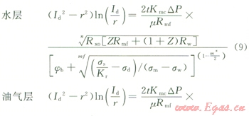 1) 鉆井液濾液侵入水層。假設(shè)鉆井液濾液均勻侵入水層,而它與地層水之間沒(méi)有傳質(zhì)現(xiàn)象。其侵入深度可用下式表示: