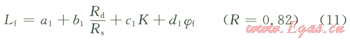 就低角度裂縫而言,不妨用裂縫的徑向延長(zhǎng)深度(Lf)來(lái)近似代替鉆井液侵入深度(Id)。對(duì)塔中多口井的15個(gè)樣本井段儲(chǔ)層參數(shù)(深淺電阻率的比值、儲(chǔ)層滲透率、裂縫孔隙度和裂縫的徑向延伸長(zhǎng)度等參數(shù)值)進(jìn)行數(shù)理統(tǒng)計(jì)分析發(fā)現(xiàn),裂縫的徑向延伸長(zhǎng)度與這些單相關(guān)關(guān)系很差。同時(shí)也進(jìn)一步說(shuō)明,裂縫的徑向延伸長(zhǎng)度受深淺電阻率比值、裂縫孔隙度等多種因素的控制,即: