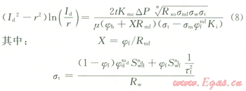 不難看出式(6)已經(jīng)消除了可變膠結(jié)指數(shù)的影響,進(jìn)一步證明了“當(dāng)其他條件不變時(shí),鉆井液濾液侵入地層的深度主要受泥餅滲透率和地層的孔滲特性?xún)煞矫嬉蛩氐目刂?,這點(diǎn)與非裂縫性砂泥巖地層比較類(lèi)似”的觀點(diǎn)是經(jīng)得起推敲的。再將式(6)帶入式(3)可以得到: