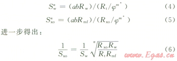 上式中σt經(jīng)常又用深側(cè)向電導(dǎo)率來(lái)代替。Swd、Swf分別為粒間孔隙系統(tǒng)和裂縫系統(tǒng)的飽和度;φd為粒間孔隙度;md為粒間孔隙系統(tǒng)的膠結(jié)指數(shù);nd、nf分別為粒間孔隙系統(tǒng)和裂縫系統(tǒng)的飽和度指數(shù);σmf為鉆井液濾液電導(dǎo)率;