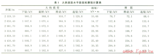 2.2水平段鉆具扭矩及摩阻計(jì)算