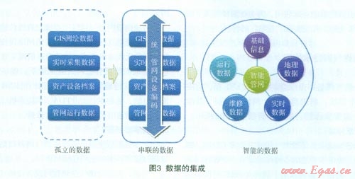 從孤立的數(shù)據(jù)到可以串聯(lián)的數(shù)據(jù)最終達到共享數(shù)據(jù)中心智能數(shù)據(jù)的目標(biāo),真正實現(xiàn)管網(wǎng)數(shù)據(jù)的完整性、可靠性、關(guān)聯(lián)性、有效性、實時性。從數(shù)據(jù)的集成到?jīng)Q策的智慧,是各個行業(yè)企業(yè)管理信息化發(fā)展的必然途徑和最終目標(biāo)。