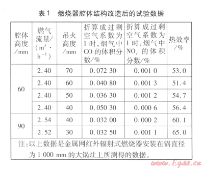 由試驗得出,所測試的燃燒器安裝在鍋直徑為1