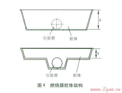 燃燒器腔體結(jié)構(gòu)的設(shè)計是燃燒器穩(wěn)定燃燒的關(guān)鍵因素之一。由于引射器的擴散管在燃燒器的腔體內(nèi)部.因此,為容納擴散管,傳統(tǒng)的紅外輻射式燃燒器腔體高度相對較高,使得腔體的體積偏大,當(dāng)完全預(yù)混燃燒時,就會產(chǎn)生高頻噪聲,腔體還會起到放大噪聲的作用。因此,在保證正常燃燒的前提下,應(yīng)盡可能降低腔體的高度。