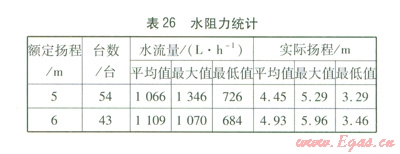 水阻力檢測時需要測量水泵的最大揚程和最大流量,通過數(shù)據(jù)統(tǒng)計我們發(fā)現(xiàn)同一品牌同一型號的水泵,水流量和揚程的區(qū)別很大。水阻力統(tǒng)計見表26。