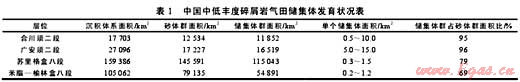 儲(chǔ)集體的大型化發(fā)育是指由平緩地勢(shì)與繼承性水系控制的沉積砂體,經(jīng)過(guò)成巖作用改造后形成的“儲(chǔ)集體群”,或碳酸鹽巖經(jīng)過(guò)后生溶蝕改造作用而形成的“縫洞單元”群,多以集群方式出現(xiàn),規(guī)模相當(dāng)大。本文所說(shuō)的儲(chǔ)集體大型化發(fā)育,是指儲(chǔ)集體群的規(guī)模在數(shù)千至數(shù)萬(wàn)平方千米以上(見(jiàn)表1、表2),如鄂爾多斯盆地蘇里格氣田已探明與基本探明的含氣面積超過(guò)3.3×104km2,相對(duì)獨(dú)立的氣藏?cái)?shù)量多達(dá)數(shù)萬(wàn)個(gè)。碳酸鹽巖縫洞型“儲(chǔ)集體群”在塔里木、四川和鄂爾多斯盆地都有發(fā)育,是碳酸鹽巖廣泛發(fā)育的一種儲(chǔ)集體類型。如果以縫洞單元作為油氣成藏的基本單元,也是由數(shù)千至數(shù)萬(wàn)個(gè)油氣成藏單元組成的大型油氣藏群,分布面積在數(shù)千至數(shù)萬(wàn)平方千米以上。