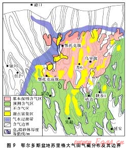 鄂爾多斯盆地蘇里格氣田開發(fā)實(shí)踐表明,在氣田北部和西部地區(qū)出現(xiàn)了明顯的氣水(同產(chǎn))井或者水井,有明顯的氣水過(guò)渡帶特征,表明該區(qū)可能為氣田的宏觀邊界。另一方面,由于儲(chǔ)集體的強(qiáng)非均質(zhì)性,導(dǎo)致氣田內(nèi)部出現(xiàn)很多儲(chǔ)集層砂巖不發(fā)育區(qū),屬于巖性尖滅帶,應(yīng)該也是氣藏的邊界(見(jiàn)圖9)。