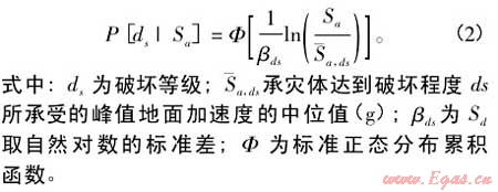 (4)在反映不同破壞等級(jí)的建構(gòu)筑物或設(shè)施脆弱性曲線上,查找對(duì)應(yīng)上述譜加速度(位移)的概率值,即為該燃?xì)庀到y(tǒng)可能遭受特定破壞等級(jí)的可能性大小。