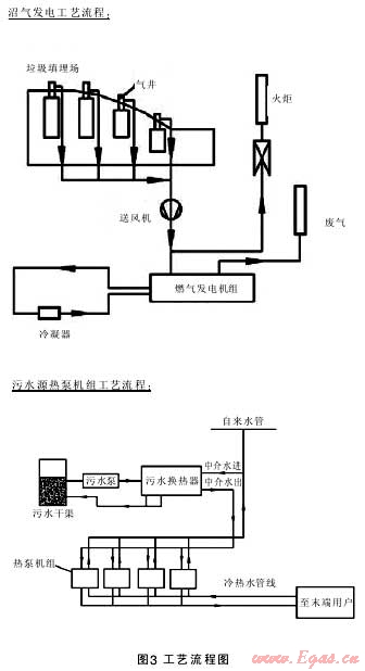 以水源熱泵技術(shù)為基礎(chǔ),結(jié)合其它新能源技術(shù)和建筑技術(shù),我們認(rèn)為可以將污水源熱泵、沼氣和燃?xì)獍l(fā)電技術(shù)結(jié)合應(yīng)用,并進(jìn)行相關(guān)工藝技術(shù)和設(shè)備的研發(fā)。