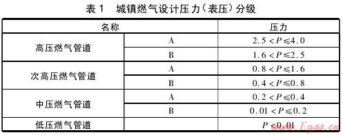 城鎮(zhèn)燃?xì)夤艿缐毫Ψ旨壖暗叵氯細(xì)夤艿琅c建筑物、構(gòu)筑物或相鄰管道之間水平凈距分別見表1,表2。