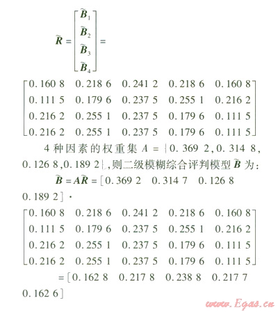 由一級模糊綜合評價(jià)可知二級模糊矩陣為:
