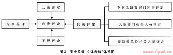 1) 安全監(jiān)督考核的實施應遵循如下步驟:建立一個科學的考核機構(gòu),多方收集信息;進行“立體考核”,上級評定安全監(jiān)督“立體考核”體系(見圖2)。