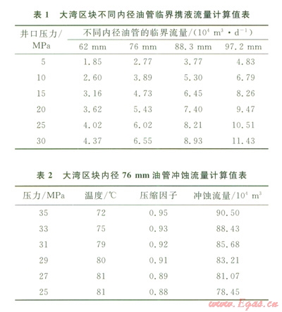 采用節(jié)點分析方法,結(jié)合臨界攜液流量(表1)、沖蝕流量(表2)的計算,考慮酸壓施工的排量要求和力學(xué)性能分析,選擇ø
