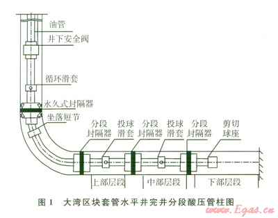 大灣區(qū)塊儲層埋藏深,天然裂縫發(fā)育較少,Ⅰ、Ⅱ、Ⅲ類儲層交錯,長井段籠統(tǒng)改造投產(chǎn)難以發(fā)揮單井產(chǎn)能。因此,能夠分段改造儲層是對水平井完井管柱設(shè)計的基本要求。