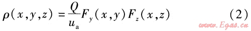 式中ρ(x,y,z)——下風向空間任意一點的質(zhì)量濃度,mg/m3
