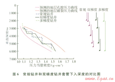 與常規(guī)鉆井和雙梯度鉆井方法相比,采用多梯度鉆井能更好地匹配地層孔隙壓力和破裂壓力窗口,有效控制井筒環(huán)空壓力在地層壓力窗口中變化,使井底壓力在較長的井段內(nèi)介于地層壓力和破裂壓力之間,實現(xiàn)“移動的海底”概念,能夠簡化深水井復雜井身結(jié)構(gòu),有效地減少深水鉆井存在的問題,實現(xiàn)安全鉆進。
