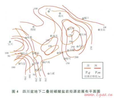 基于上述論證,以四川盆地下二疊統(tǒng)碳酸鹽巖烴源巖為例,討論了碳酸鹽巖烴源巖的展布和成藏條件。