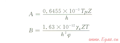 P0為原始地層壓力,MPa;p為目前地層壓力,MPa;K0為原始滲透率,mD;K為目前滲透率,mD;a為滲透率模量,Mpa-1;r為平面徑向距離,m;m為黏度,mPa·s;u為氣體在地層中的滲流速度,m/s;b為湍流系數(shù),m-1;r為地層氣體密度,kg/m3;Qsc為地面標準狀態(tài)下的產(chǎn)量,m3/d;psc為標準大氣壓,Mpa;Z為氣體偏差,無因次;T為地層溫度,K;h為儲層百度,m;Tsc為標準狀態(tài)下溫度,K;gg為地層氣體的相對密度,無因次;R為通用氣體常數(shù),Mpa·m3/(kmol·K);j為孔隙度,無因次。