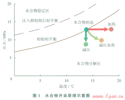 減壓法被認(rèn)為具有比較好的能量效率,即能效比高。但是目前發(fā)現(xiàn)的水合物藏,不能只依靠單一的減壓法而將水合物開采出來。麥索雅哈氣田的水合物減壓開采,多年來也都依靠往水合物層注入熱力學(xué)抑制劑,才得以順利開采部分水合物。加熱法能夠快速分解水合物,但是加熱法的缺點(diǎn)是投入成本高、能效比低。需要指出的是,加熱開采水合物最為重要的作用在于防止二次水合物和冰的形成。注入熱力學(xué)抑制劑法難以采用,其原因除了成本高以外,還因?yàn)闀?huì)帶來環(huán)境污染,而且對于無流動(dòng)性底層的水合物,抑制劑無法接近待分解的水合物,難于發(fā)揮其作用。二氧化碳置換開采法工程實(shí)施困難、置換效率也不高,工藝條件也需要進(jìn)一步探索研究。
