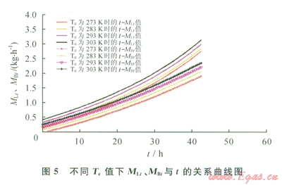 冷卻過程中時間(t)與儲罐溫度(Tt)的關(guān)系: