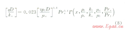 缺液區(qū)以液滴在氣體的彌狀流動為主。關于彌狀流的傳熱公式選擇下式[11]: