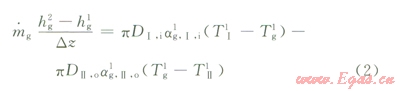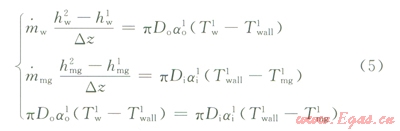 式中下標mg代表該段的NG氣體,wall代表管壁,o代表管外側(cè),i表示管內(nèi)側(cè),其余同上。