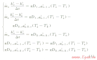 7)環(huán)狀間隙和內(nèi)套管中的兩股流體混合后的焓值與混合前兩股流體的焓值之和相等。