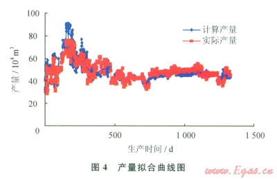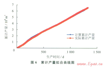 前面4個(gè)測(cè)試點(diǎn)呈現(xiàn)線性關(guān)系,從第5個(gè)測(cè)試點(diǎn)開始明顯偏離直線段,說明有水侵發(fā)生。若采用水驅(qū)氣藏的壓降法計(jì)算動(dòng)態(tài)儲(chǔ)量,則根據(jù)前面4個(gè)數(shù)據(jù)點(diǎn)的線性關(guān)系為y=-0.289x+22.94,外推出動(dòng)態(tài)地質(zhì)儲(chǔ)量為97.4×108m3,這個(gè)值遠(yuǎn)遠(yuǎn)超過該層的地質(zhì)儲(chǔ)量38.58×108m3,說明水侵發(fā)生得更早。