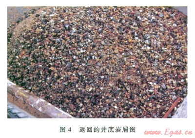 本次Æ215.9mm垂直井眼段的鉆進(jìn)試驗(yàn),按鉆井泵排量為18.5L/s時(shí)計(jì)算環(huán)空返速就達(dá)到36.57m/min,實(shí)際鉆井中鉆井泵排量在17~20L/s,井眼清洗情況良好(圖4)。