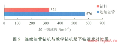 在相同地質(zhì)狀況和用同一臺鉆井泵的情況下,將連續(xù)油管鉆機(jī)與相距35.6m處宏華2號教學(xué)鉆機(jī)(ZJ40DBS鉆機(jī)+頂驅(qū))的鉆井情況進(jìn)行對比如下: