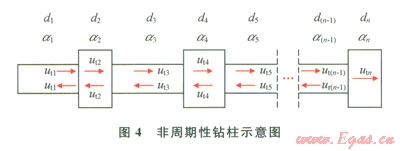 和聲阻抗z=ρac物理意義,可知正是因?yàn)榻Y(jié)構(gòu)中離散分布接頭的存在,造成了鉆柱結(jié)構(gòu)在空間物理參數(shù)的突變,使鉆柱聲傳信道的聲阻抗和聲傳播特性變得復(fù)雜。