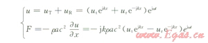 式中u為位移,m;下標(biāo)T、t和R、r分別表示透射波和反射波;F為法向力,N;k為波數(shù);x為距離,m;a以為截面積,m2;ω為角頻率,rad/s;ρ為密度,kg/m3;c為聲
