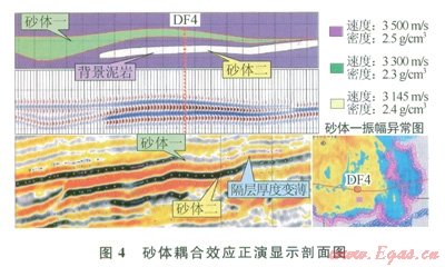 DFl3氣田平面分布達(dá)數(shù)百平方千米,儲(chǔ)層、蓋層橫向上變化較大。受沉積速度、厚度及壓實(shí)不均影響,泥巖蓋層的速度及密度在空間上存在較大差異。由此導(dǎo)致同一套氣層具有完全不同的地震響應(yīng)特征。當(dāng)存在致密泥巖蓋層時(shí),致密泥巖旁瓣的波谷會(huì)與氣層頂面的波谷疊加,導(dǎo)致氣層頂面出現(xiàn)異常“亮點(diǎn)”;相反,當(dāng)蓋層是一套相對(duì)低阻抗泥巖時(shí)(本區(qū)蓋層阻抗均高于儲(chǔ)層),氣層頂面反射相應(yīng)減弱,從而導(dǎo)致對(duì)儲(chǔ)層含氣性的誤判。