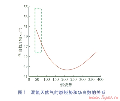 任何燃具都是按一定的燃氣成分設計的。當氫氣加人到天然氣中導致燃氣成分發(fā)生變化時,燃具燃燒器的燃燒工況會改變,將會影響燃具的性能,甚至導致原有的燃具不能正常工作。因此氫氣加入天然氣后必須考慮互換性問題。衡量互換性的兩個常用參數(shù)為華白數(shù)和燃燒勢。
