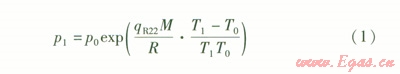 熱泵循環(huán)過(guò)程工質(zhì)壓力與熱泵蒸發(fā)溫度和冷凝溫度有關(guān)。選R22為熱泵的工質(zhì),假定工質(zhì)為等溫狀態(tài)下進(jìn)行冷凝與蒸發(fā),壓縮機(jī)進(jìn)口工質(zhì)壓力為: