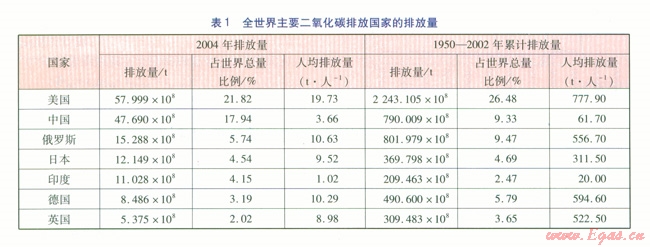 隨著國(guó)民經(jīng)濟(jì)的發(fā)展和人民生活水平的提高,供熱消耗的能源不斷增加,排放的二氧化碳量越來(lái)越多。全世界主要二氧化碳排放國(guó)家的排放量見表1[1]。由表1可知,美國(guó)2004年的排放量和l950-2002年的累計(jì)排放量均占世界第一位;我國(guó)2004年的二氧化碳排放量為世界第二位,1950-2002年的累計(jì)排放量為世界第三位;7個(gè)國(guó)家二氧化碳排放量合計(jì)約占全世界的60%。我國(guó)二氧化碳排放量增加速度加快,說(shuō)明進(jìn)入21世紀(jì)后,我國(guó)經(jīng)濟(jì)發(fā)展速度加快,能源消耗增加,導(dǎo)致二氧化碳排放量增加,我國(guó)二氧化碳的減排壓力越來(lái)越大。如果按目前的經(jīng)濟(jì)發(fā)展速度,我國(guó)的二氧化碳排放量不久將會(huì)超過(guò)美國(guó),碳減排的任務(wù)非常艱巨。