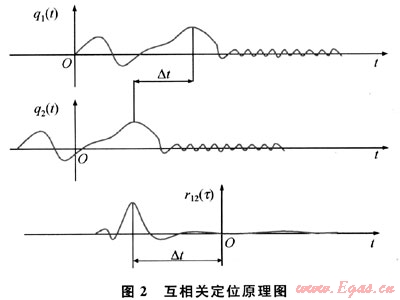 通過求相關(guān)函數(shù)r12(r)的極大值和極大值對(duì)應(yīng)的τ0,即可進(jìn)行泄漏檢測(cè)和定位?;ハ嚓P(guān)定位原理圖如圖2所示。