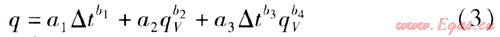 應用非線性兩元三因素回歸方法,地板散熱量計算公式為: