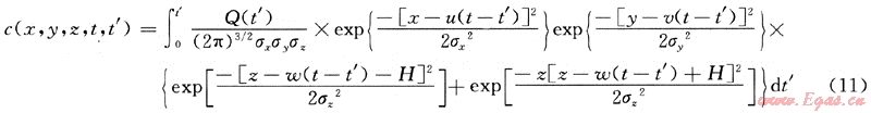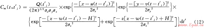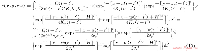 t’≠t當(dāng)時,即泄漏源不是連續(xù)源也非瞬時源時,此時,上式中的Q(t-t’)應(yīng)取泄漏源Q(t’),則非連續(xù)源非穩(wěn)態(tài)泄漏擴散模型計算式應(yīng)修正為: