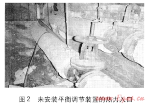 該熱力站供熱的35幢建筑中,有14幢建筑的外墻在2009年進(jìn)行了節(jié)能改造,并在熱力入口安裝了平衡調(diào)節(jié)裝置,見(jiàn)圖1。其他21幢建筑未進(jìn)行外墻節(jié)能改造,熱力入口也未安裝平衡調(diào)節(jié)裝置,見(jiàn)圖2。供熱建筑室內(nèi)均采用散熱器供暖系統(tǒng),未安裝溫控閥。