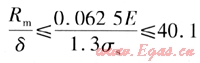在計算極限狀態(tài)應力時,當管道最大軸向應力不超過極限狀態(tài)應力,錨固段的直管段就不會發(fā)生局部屈曲。管道的極限狀態(tài)應力與臨界徑厚比Rm/δ有關,當管徑確定,鋼管的壁厚越薄,越容易發(fā)生局部屈曲。管道最大軸向應力的極限狀態(tài)為: