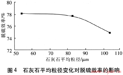 ④ 石灰石的平均顆粒粒徑越小,爐內脫硫效率越高。但石灰石粒徑過小時,會在爐膛內停留時間太短,且無法被分離器捕捉送回,從而影響其利用率及脫硫效率。