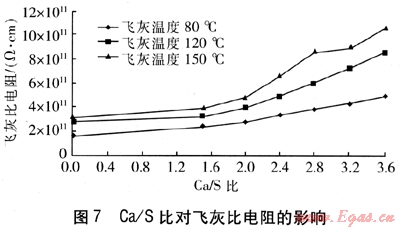 ⑦ 爐內脫硫對飛灰比電阻的影響