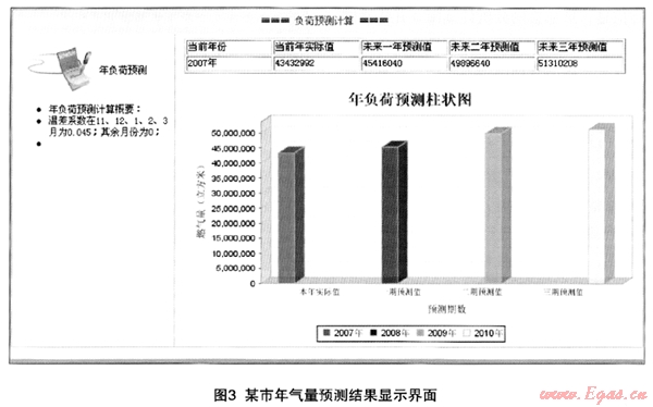 城市燃?xì)夤芫W(wǎng)建設(shè)項(xiàng)目立項(xiàng)之前,需要進(jìn)行燃?xì)庥脷饬款A(yù)測(cè)分析,如果沒有用戶,沒有燃?xì)馐褂眯枨?,那么投資建設(shè)的管線項(xiàng)目投資收益率低,從某種程度上講,投資時(shí)間過早或不宜,投資決策失誤。應(yīng)用氣量預(yù)測(cè)系統(tǒng)中的年用氣量預(yù)測(cè)功能模塊對(duì)城市燃?xì)馕磥?年用氣量進(jìn)行預(yù)測(cè),可以對(duì)燃?xì)鈿饬课磥戆l(fā)展有進(jìn)一步的認(rèn)識(shí),從而為項(xiàng)目投資決策提供重要依據(jù)。
