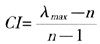 需要對判斷矩陣的質(zhì)量考察,即對矩陣進行一致性檢驗,為了檢驗矩陣的一致性,需要計算其一致性指標CI,定義: